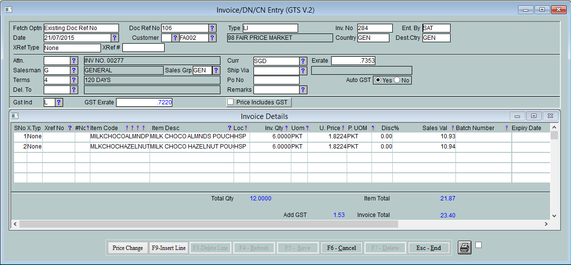 Sales Invoice Entry